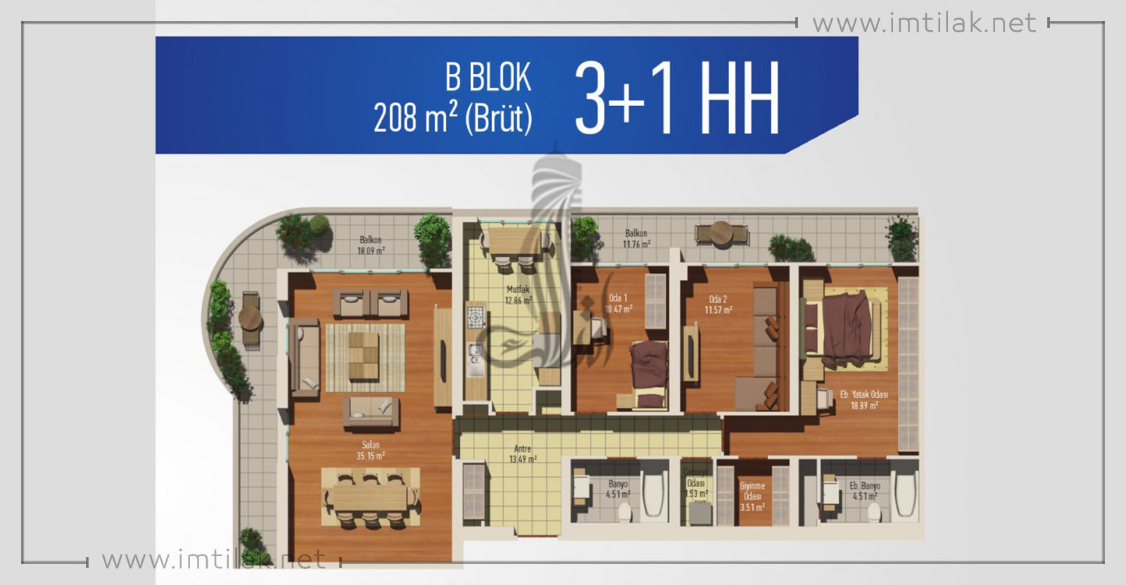 Area starts at : 208 M²