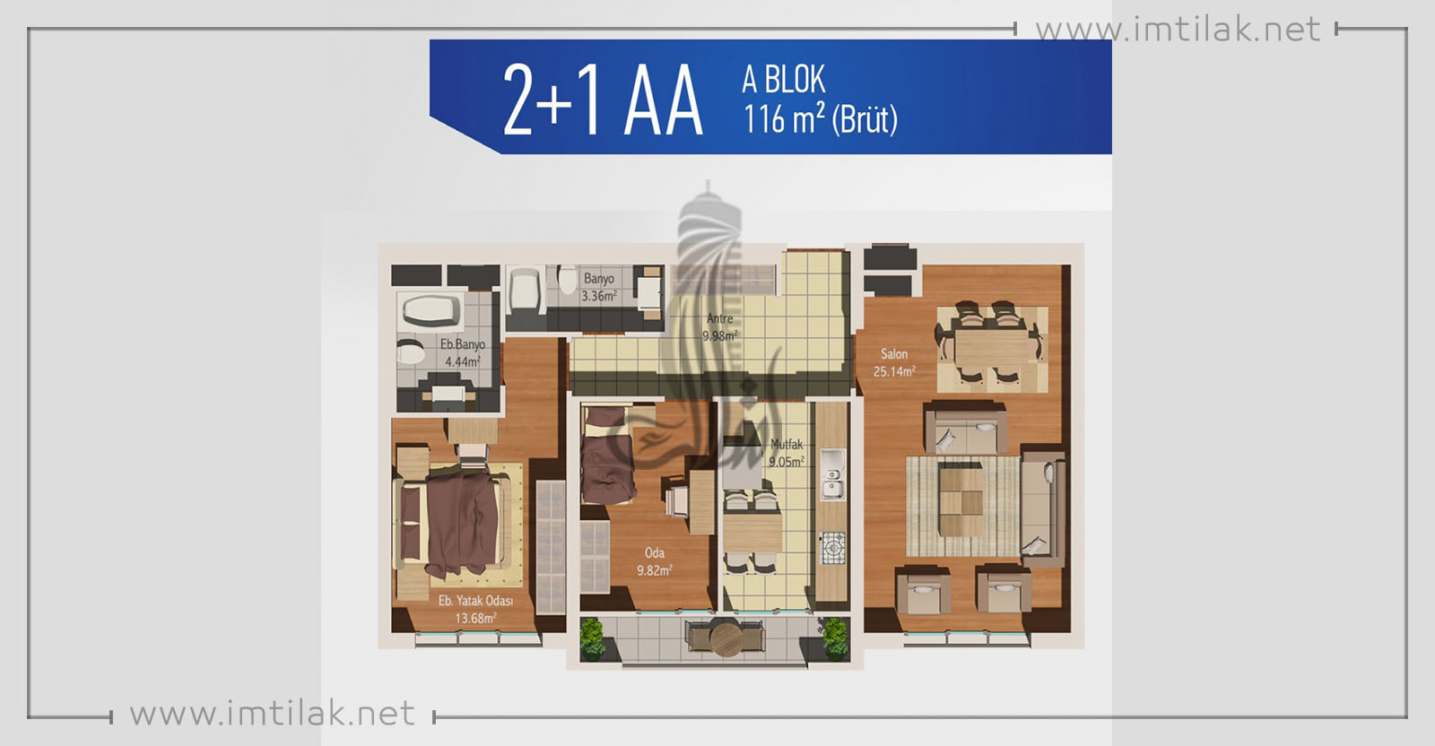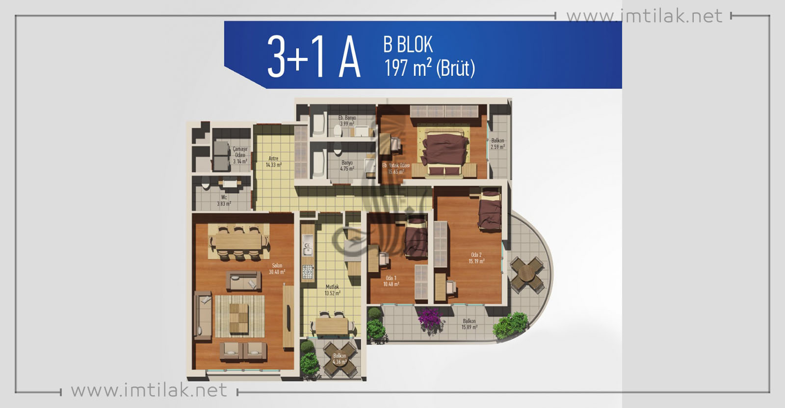 Number of rooms & living rooms : 3 + 1