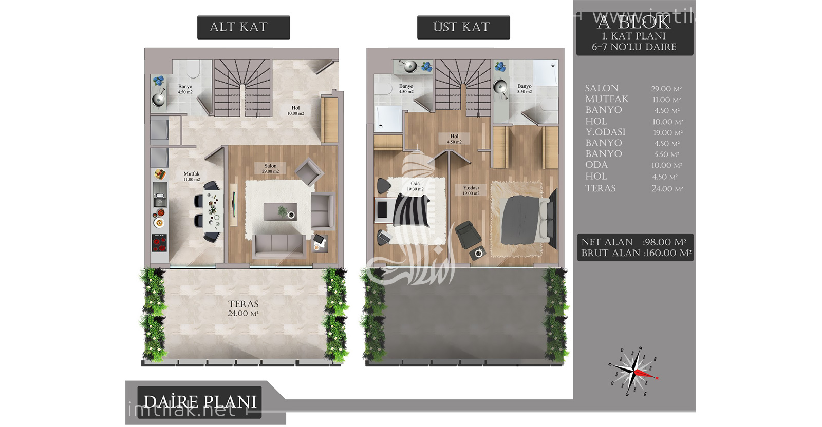 Yüzölçümleri den başlar : 160 m2