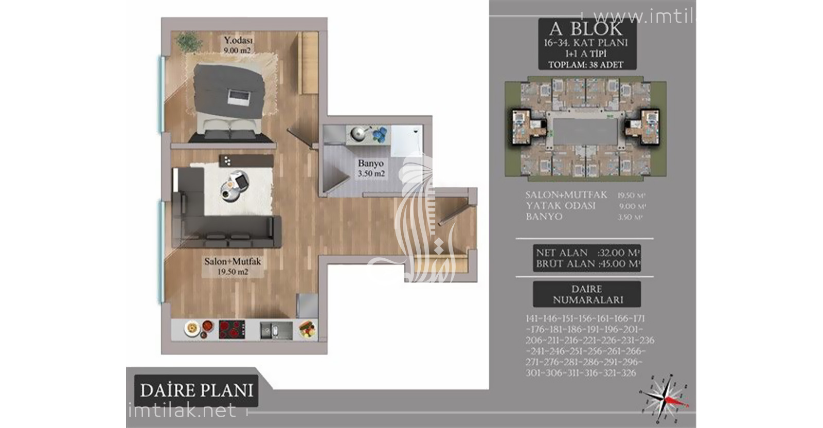 Oda ve salon sayısı : 1 + 1