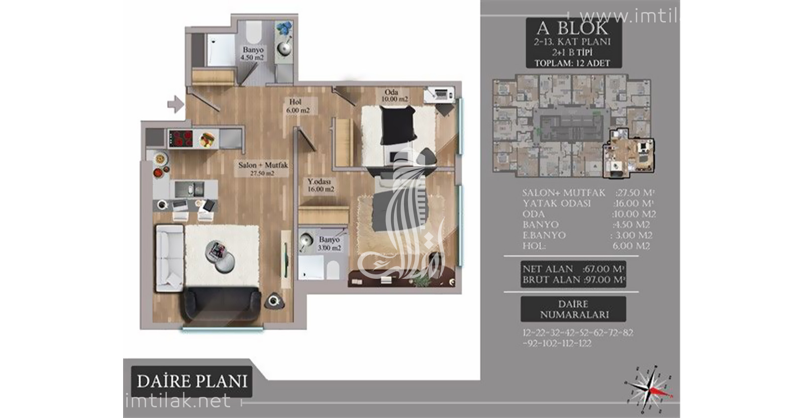 Yüzölçümleri den başlar : 61 m2