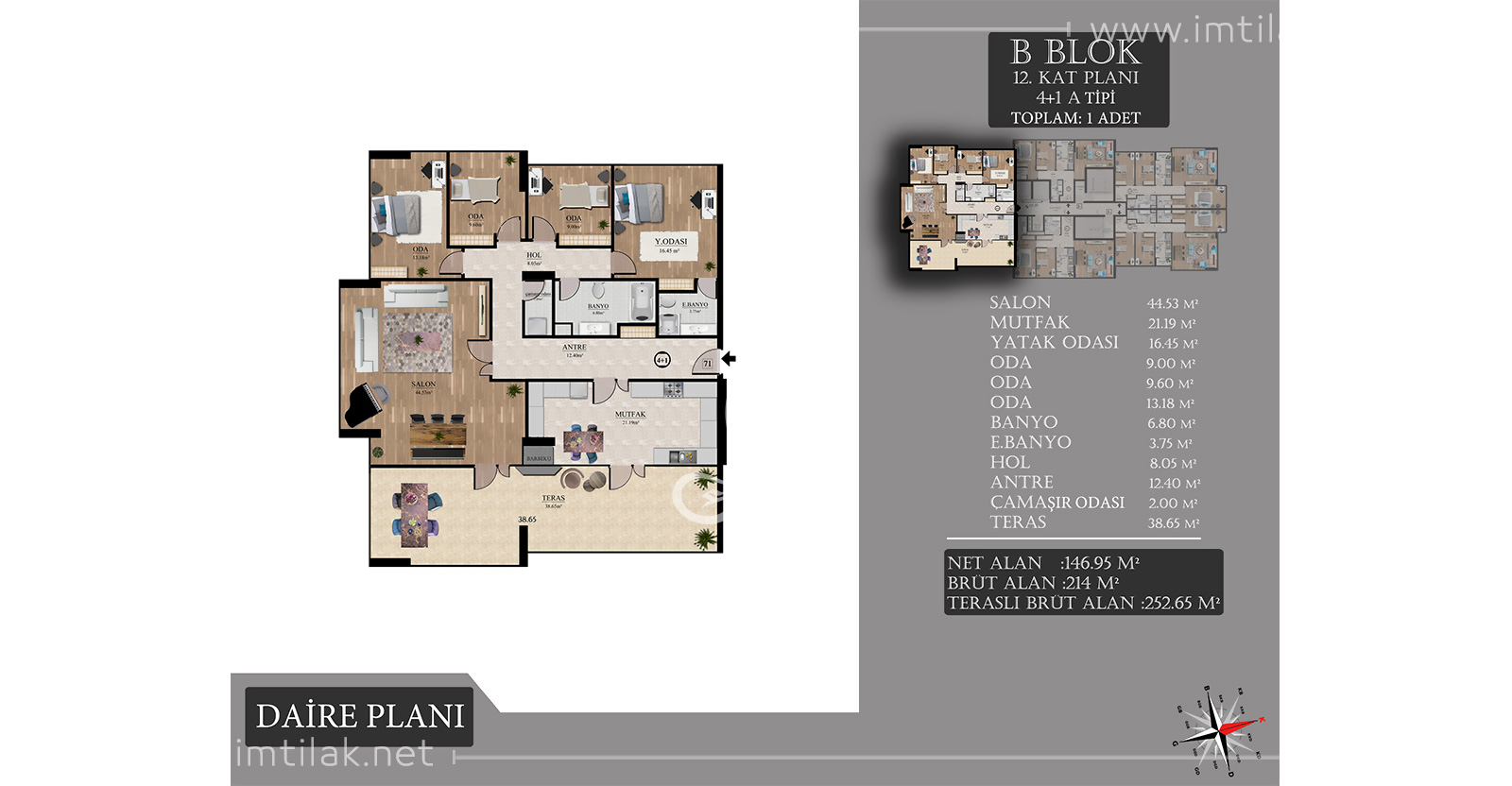 Oda ve salon sayısı : 3 + 1