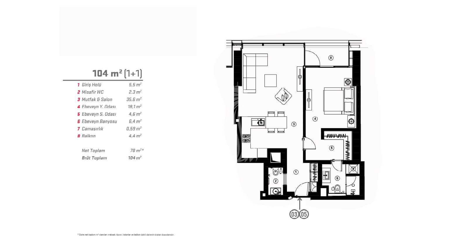 Yüzölçümleri den başlar : 104 m2